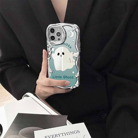 Silver Halloween small ghost Apple 14 phone case for iphone13pro/xsmax all-inclusive 12 love heart 11